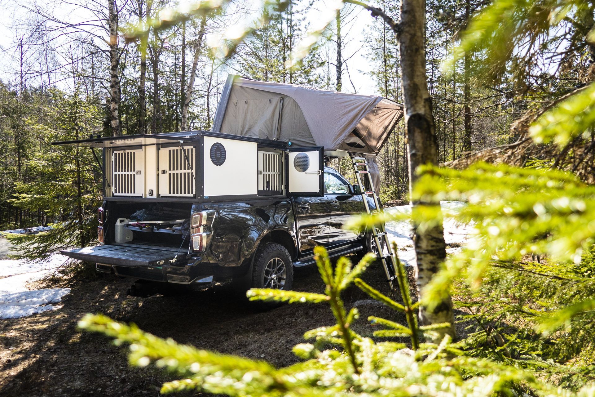 Modul 3+1 är vår absoluta storfavorit bland våra kunder och vår överlägset mest sålda modul sett över tid. I denna får man 2 rejäla hundboxar i bak som täcker hela bredden. På höger sida i fram får man en hundbox som i många fall även kan fungera som en extra packbox om man inte behöver ha en hund i den. På vänster sida har man sedan ett ladd- och vapenfack med plats för 2 vapen och laddning via 12 volts uttag. Vår modul 4+1 är likadan med pack-/laddfack vänster fram och en hundbox höger fram, men med skillnaden att man har 3 hundboxar bak istället för 2.