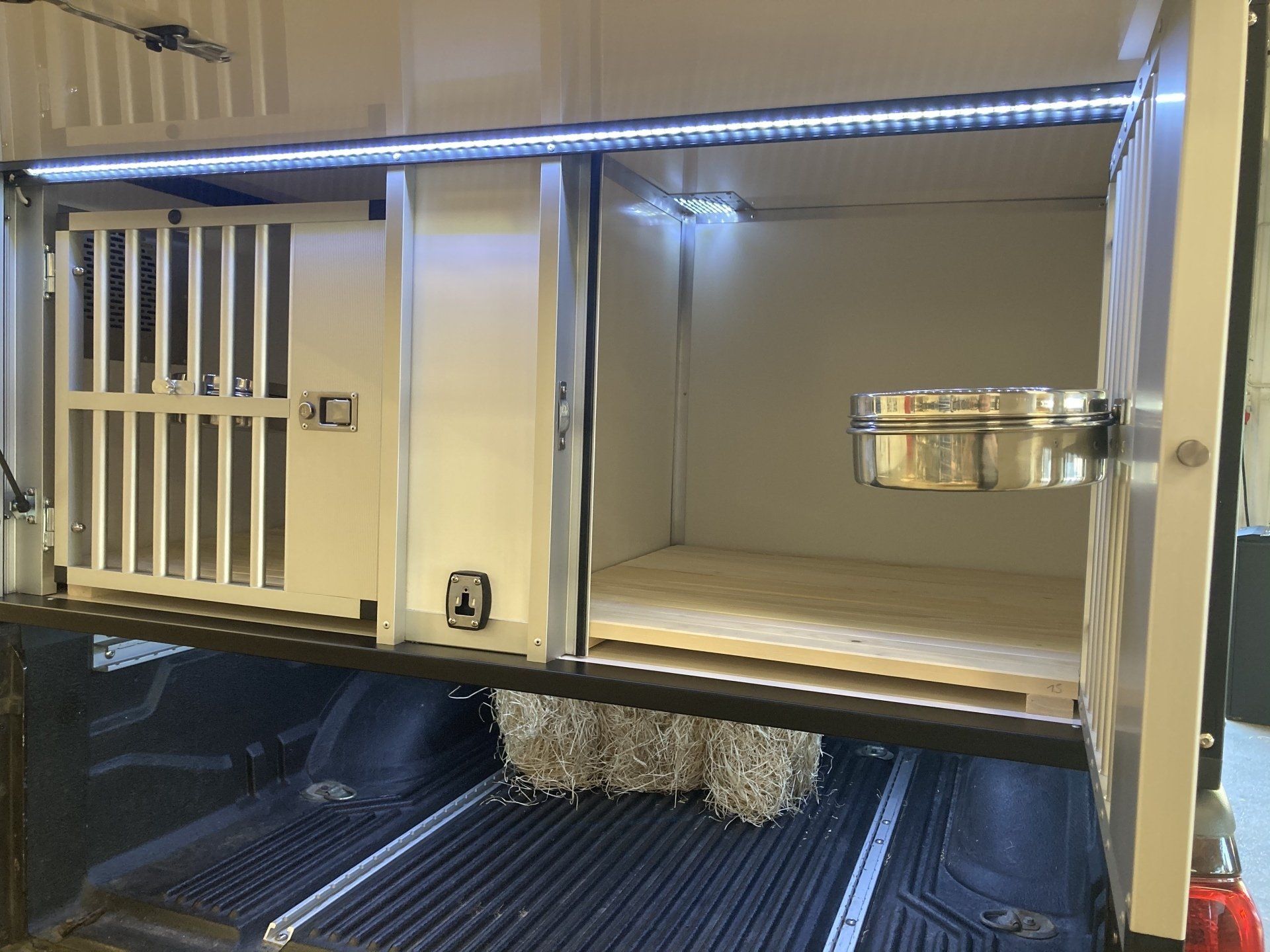Genom LED-paketet 3+1 får man 2 LED-slingor under modulen som lyser upp på själva flaket samt vid stora luckan i bak. Därmed ser man sina saker på flaket och får även ett väldigt bra ljus vid stora luckan om man skall ta på sina hundar koppel, gps, skyddsvästar.