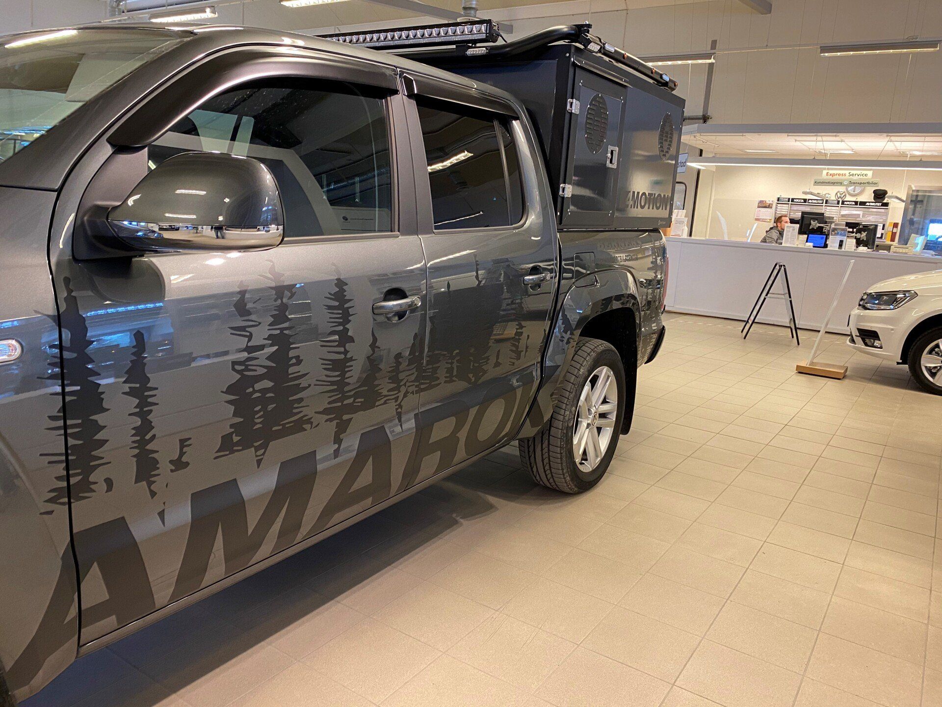 - 158 cm lång, 164 cm bred och 73 cm hög. Används för nya Isuzun, 2021.