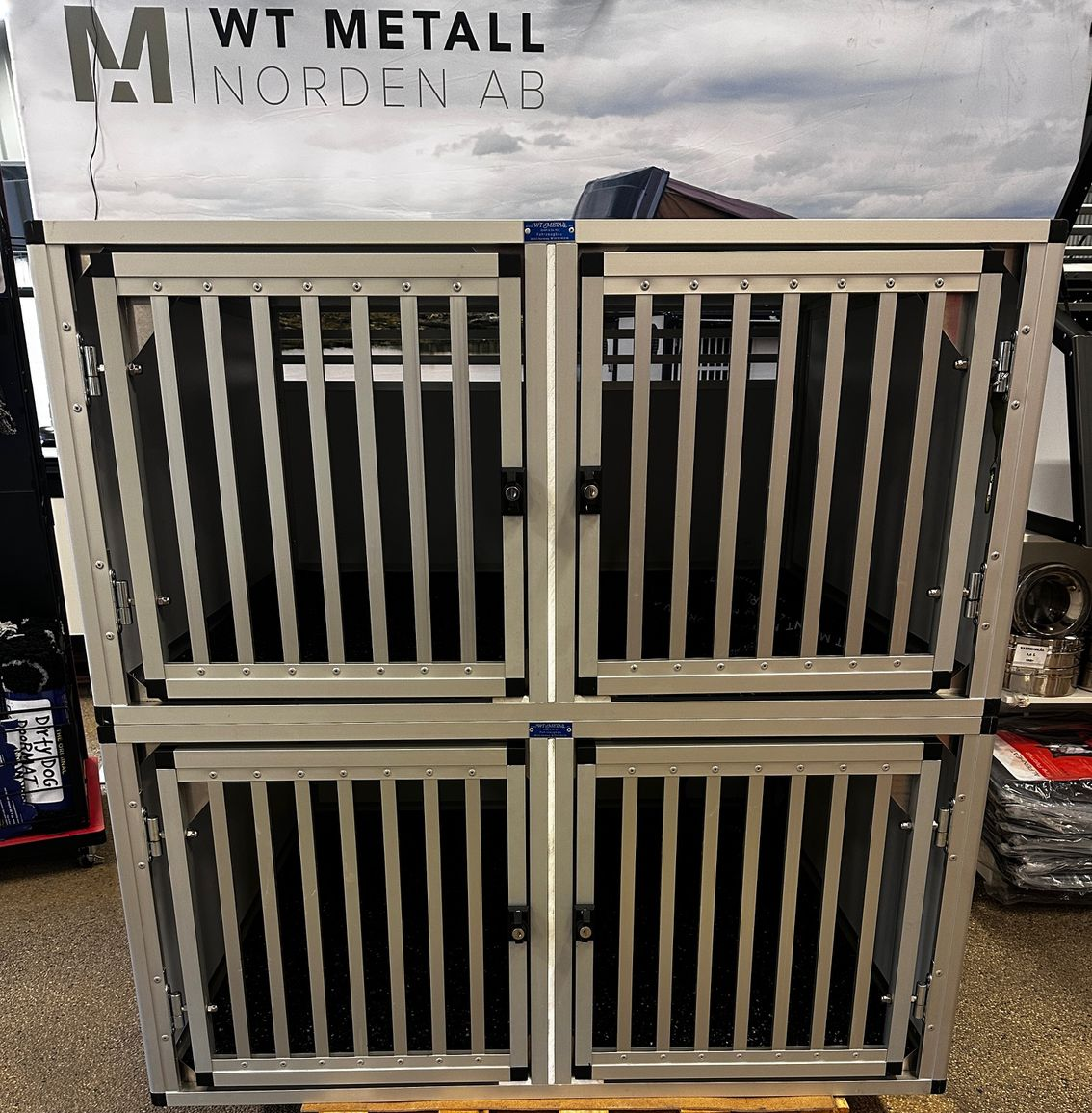 4-boxad dubbelbur i nyskick som passar ett flertal bilar. Byggd för Transporter.