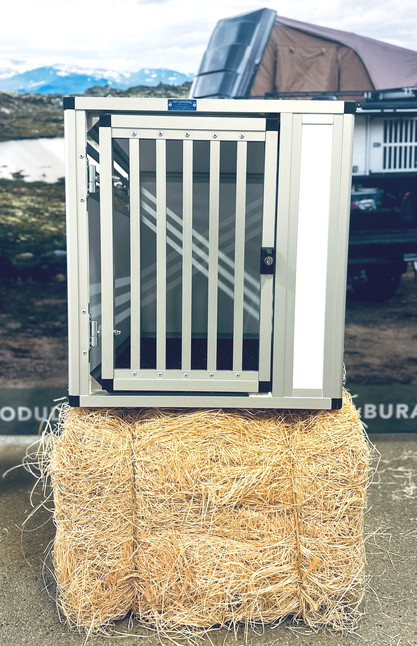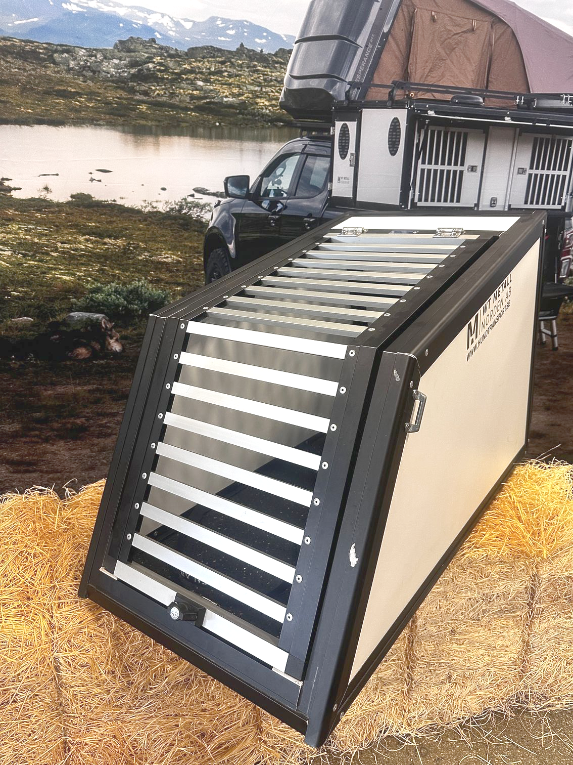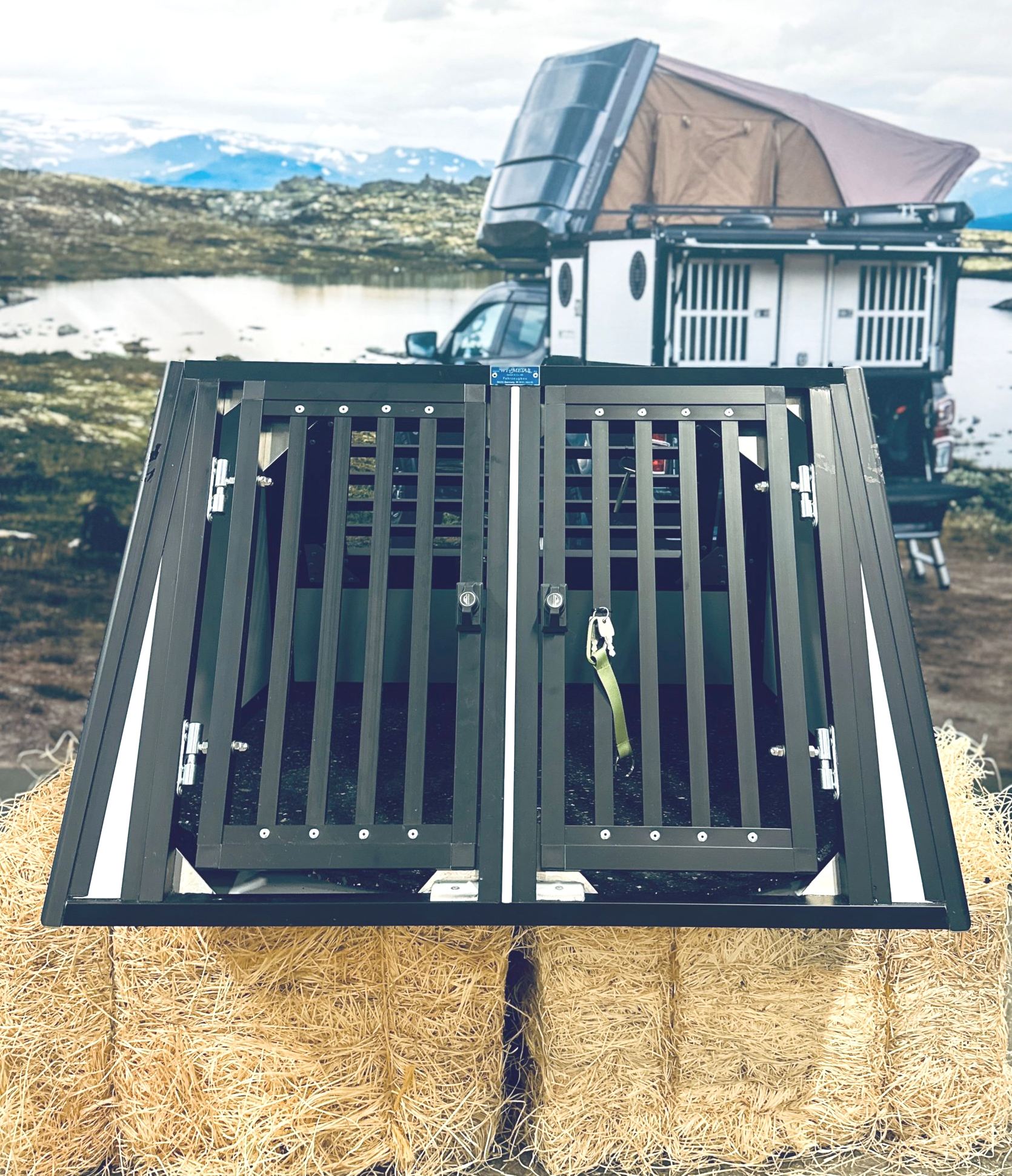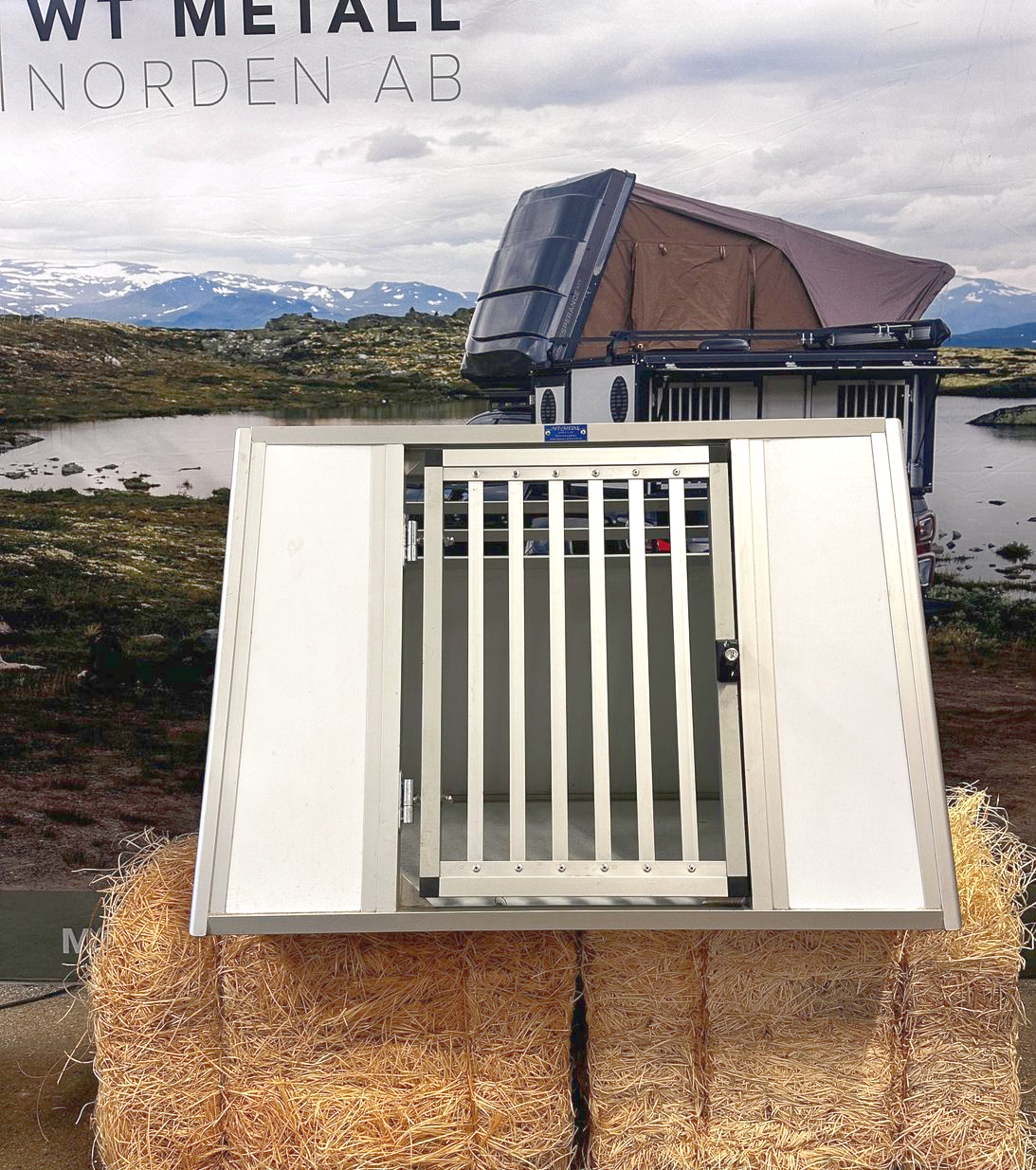 En dubbelbur byggd till Kia E-niro. Denna bur är tvådelad för att maximera höjden. Utrustad med evakueringslucka