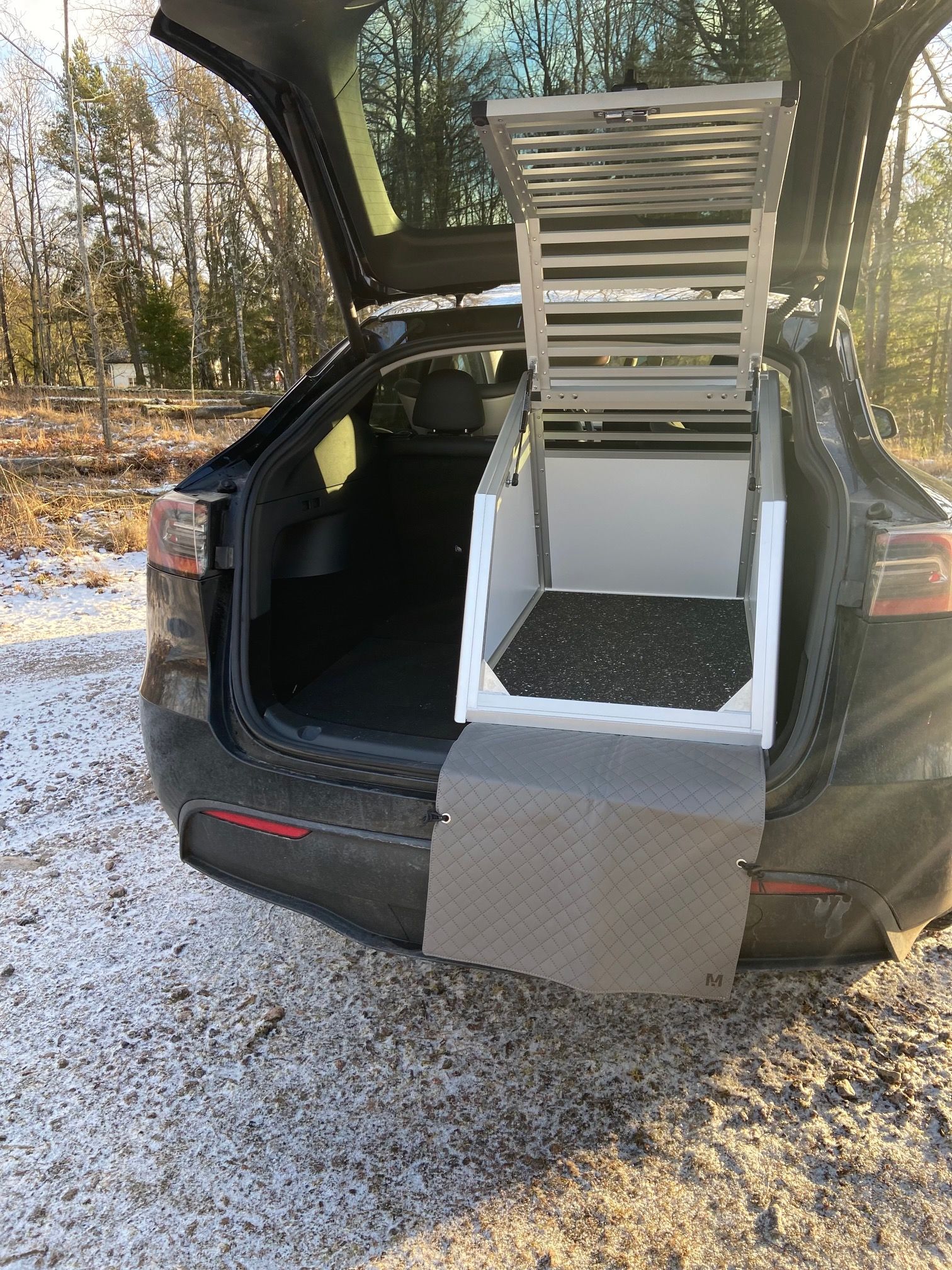 Enkelbur till Volvo V90 som ger möjlighet för den med en hund att ha yta kvar för annat!