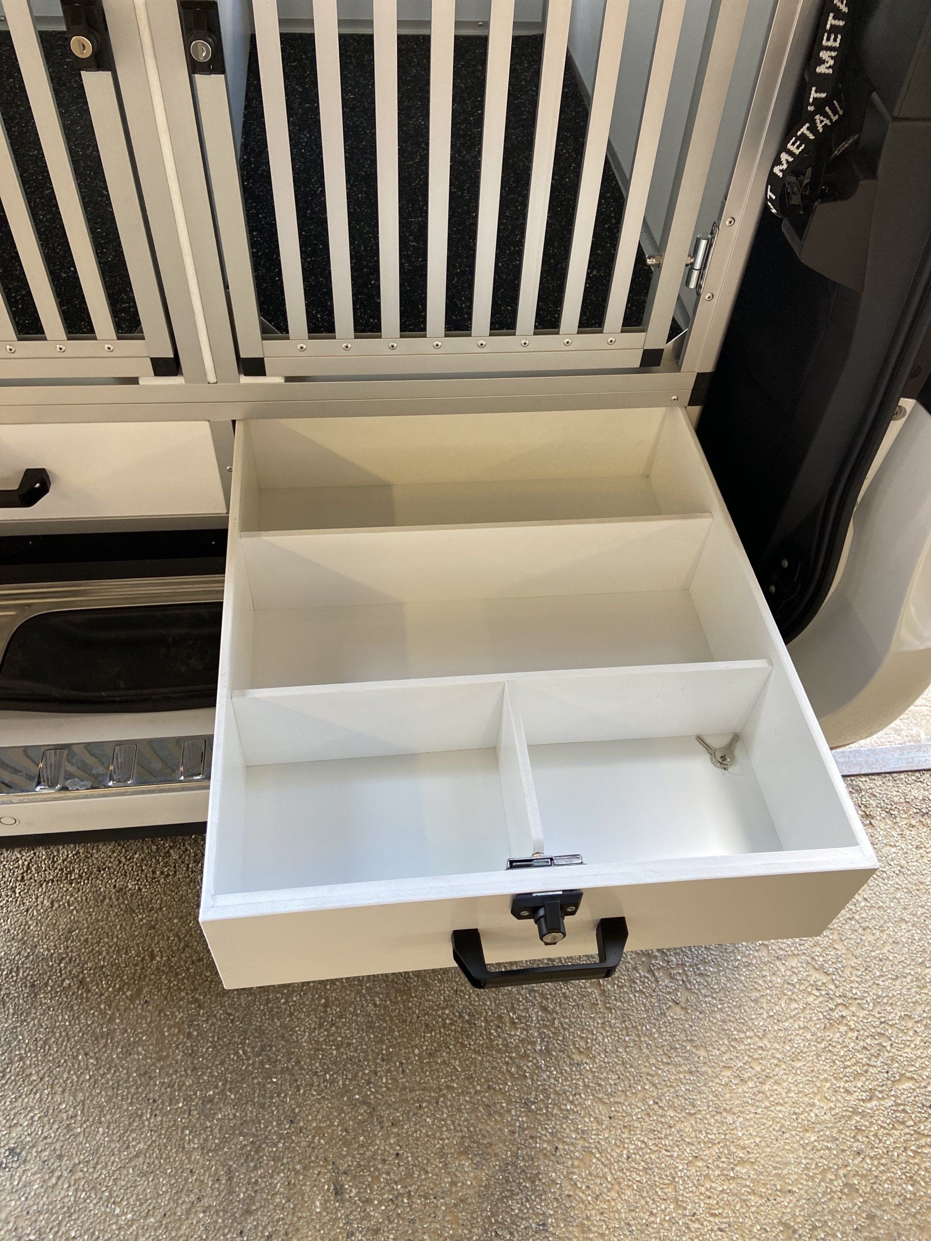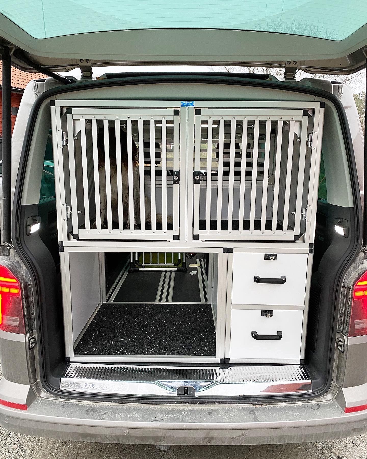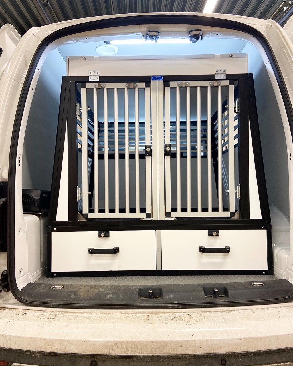 Till alla våra burar erbjuder vi ett stort urval av förvaringsmöjligheter. Många behöver ha mer plats än bara för hunden. Flera av våra kunder använder sina bilar både privat och i företag och behöver då ibland modifiera för att hitta en bra lösning! Vi skräddarsyr och försöker optimera lösningen unikt för varje kund. Tillsammans med vår kunskap och era önskemål hittar vi den perfekta lösningen för att få en så komplett bil som möjligt!