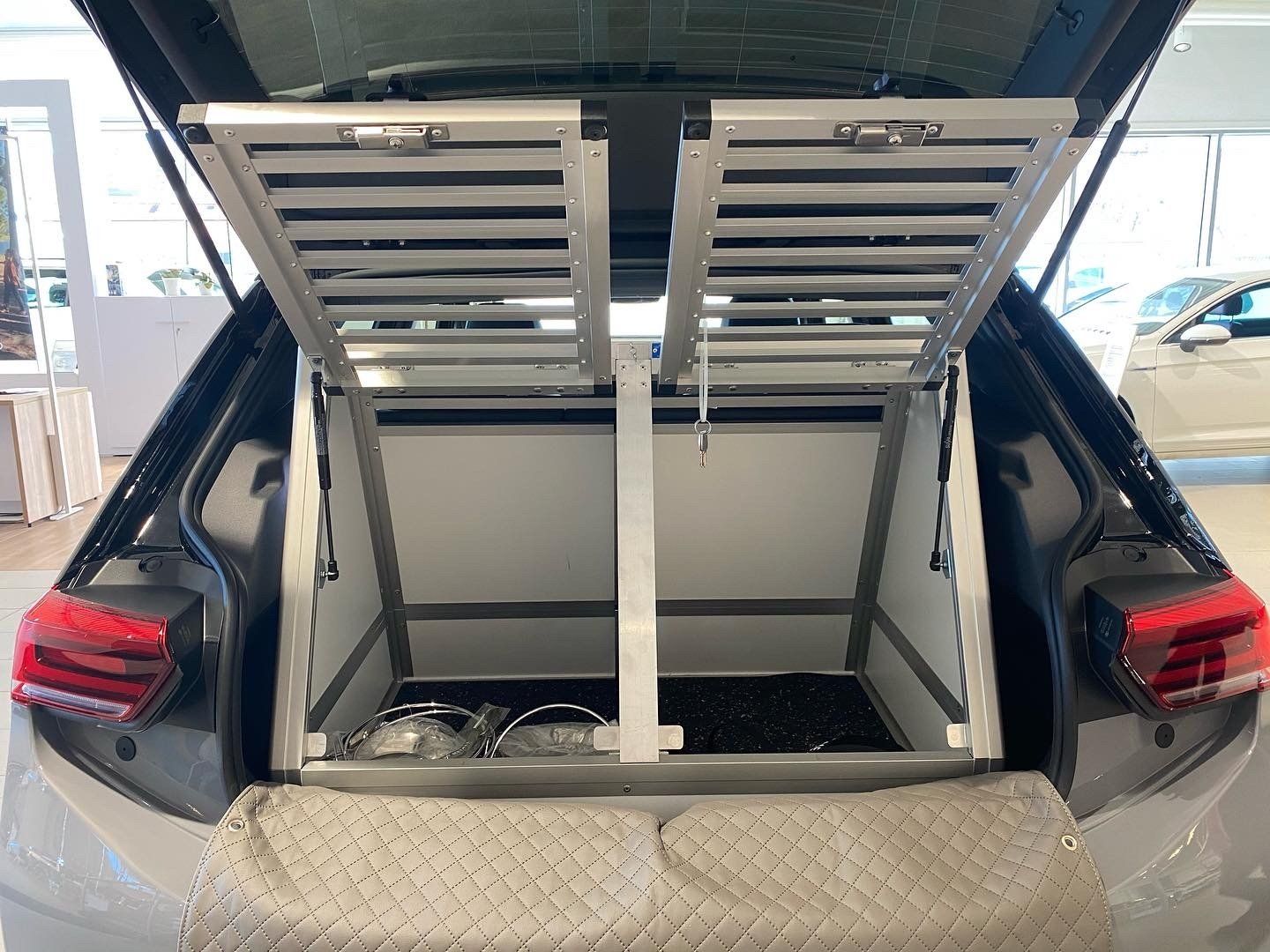 Våra måttanpassade burar är kända för sin komfort, dess gedigna utförande och sin långa livskvalité. Våra burar är slutna runt om för att minimera hundhår i resten av bilen, väggarna ger även ett solskydd för hunden med sitt värmeavstötande material. Alla våra burar utformas exakt efter din bil eller de önskemål du som kund har!